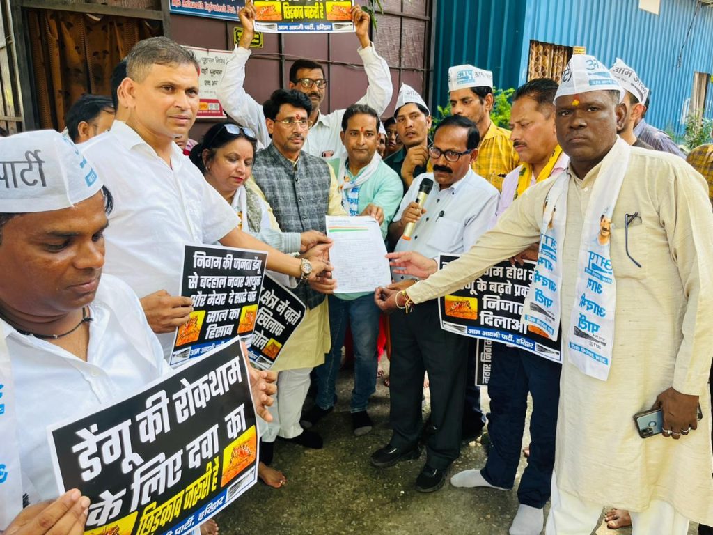 वहीं नगर निगम और स्वास्थ्य विभाग सोया पड़ा है। प्रत्येक वर्ष बरसात के बाद डेंगू मलेरिया, डायरिया जैसी बीमारियां फैलती है, परंतु स्वास्थ्य विभाग और नगर निगम इस और ध्यान नहीं देता शहर में गंदगी का अंबार लगा हुआ है, चारों तरफ गंदगी पसरी पड़ी है। जिसके चलते डेंगू बीमारी वैश्विक महामारी का रूप ले रही है। यदि एक सप्ताह के भीतर नगर निगम और स्वास्थ्य विभाग ने अपनी कार्यशैली नहीं बदली तो आम आदमी पार्टी नगर निगम में ताला लगाएगी। इस सम्बंध में एक ज्ञापन भी सौपा गया। जिसपर नगर निगम अधिकारियों ने 4-5 दिनों में पूरी व्यवस्थाएं दुरूस्थ कर लिए जाने का अश्वासन दिया।
