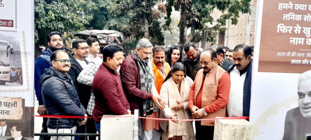 हरिद्वार। नगर निगम हरिद्वार में अटल स्मृति वर्ष के अंतर्गत आयोजित अटल स्मृति प्रदर्शनी का आयोजन किया गया। अटल स्मृति वर्ष प्रदर्शनी का शुभारंभ हरिद्वार भाजपा जिला सह प्रभारी दीपक धमीजा, नगर निगम महापौर किरण जैसल और जिला अध्यक्ष आशुतोष शर्मा ने संयुक्त रूप से फीता काटकर किया।