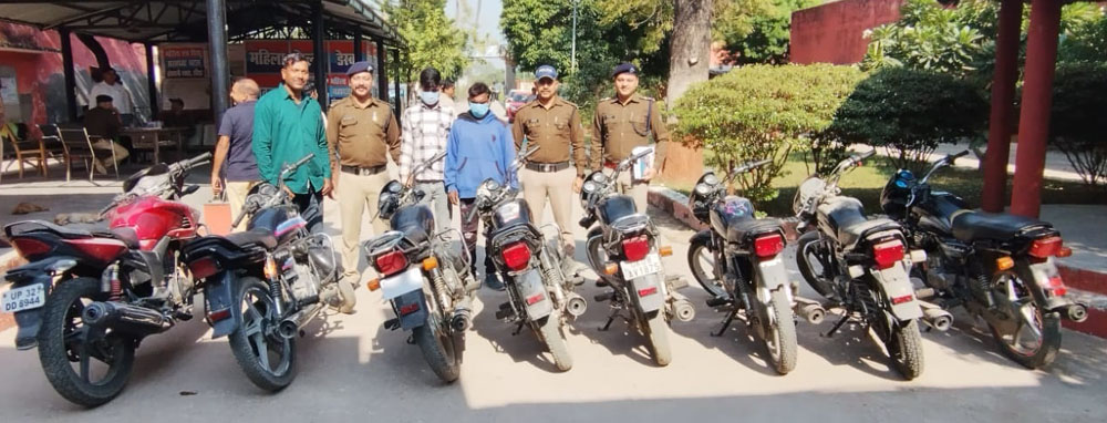 ♦आरोपियो की निशानदेही से खंडहर से चोरी की 08 बाइके बरामद