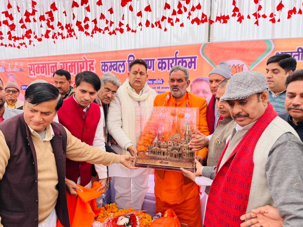 ग्राम हथियाथल में सम्मान और कंबल वितरण कार्यक्रम में मिशन—2024 को लेकर कार्य करने को किया आह्वान