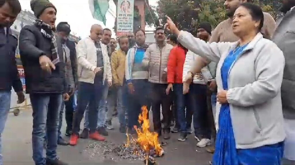 हरिद्वार। महानगर कांग्रेस द्वारा देवपुरा चौक पर चंपावत में भाजपा मंडल अध्यक्ष पर नाबालिक से दुष्कर्म के आरोप को लेकर विरोध करते हुए प्रदर्शन कर भाजपा का पुतला फूंका। इस मौके पर महानगर कांग्रेस कार्यकारी अध्यक्ष अमन गर्ग और स्वतंत्रता सेनानी उत्तराधिकारी प्रकोष्ठ अध्यक्ष मुरली मनोहर ने कहा कि चंपावत में भाजपा मंडल अध्यक्ष द्वारा नाबालिग लड़की के साथ दुष्कर्म की घटना से पूरा उत्तराखंड शर्मसार हैं। वर्ष 2022-23 की एनसीआरबी की रिपोर्ट में 903 लड़कियों के साथ दुष्कर्म के मामले और 778 लड़कियों के अपरहण की घटनाएं उत्तराखंड जैसे राज्य में घटनाएं होना चिंता का विषय है।