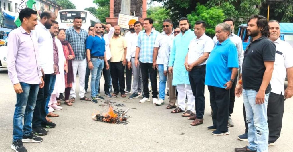 देवपुरा चौक पर कांग्रेसियों ने प्रदर्शन कर भाजपा सरकार का पुतला फूंका