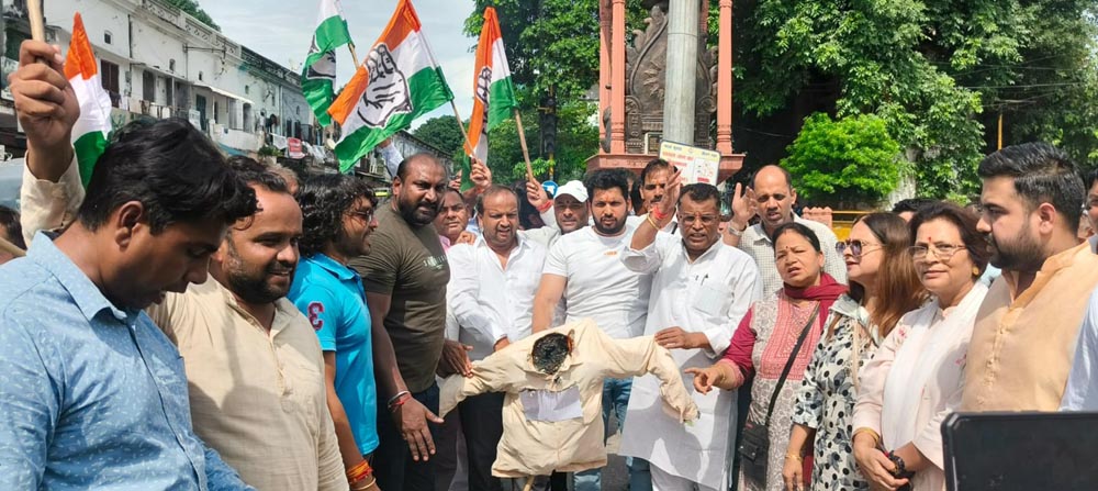 हरिद्वार। जिला महानगर कांग्रेस कमेटी हरिद्वार द्वारा देवपुरा चौक पर प्रदेश की बिगड़ती कानून व्यवस्था व प्रशासन की नाकामी के विरोध में धामी सरकार का पुतला दहन कर विरोध प्रदर्शन किया गया। इस अवसर पर जिला महानगर कांग्रेस अध्यक्ष अमन गर्ग और स्वतंत्रता सेनानी उत्तराधिकारी विभाग अध्यक्ष मुरली मनोहर ने कहा कि उत्तराखंड जैसे शांति प्रिय प्रदेश में भाजपा सरकार के संरक्षण से बदमाशों व अराजक तत्वों के हौसले बुलंद हैं और खुलेआम पंचायत चुनाव में जिला पंचायत सदस्यों के अपरहण से उत्तराखंड में लोकतंत्र का चीरहरण हुआ है जिसका खामियाजा भाजपा को 2027 के विधानसभा चुनाव में भुगतना पड़ेगा।