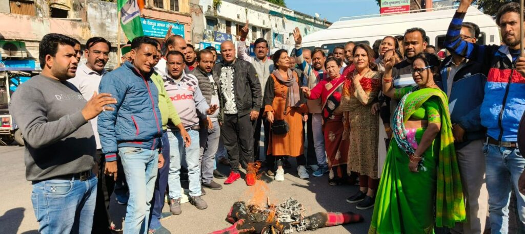हरिद्वार। जिला महानगर कांग्रेस द्वारा देवपुरा चौक पर बागेश्वर में नाबालिग लड़की के साथ दुष्कर्म के विरोध में भाजपा सरकार का पुतला फूंक कर प्रदर्शन किया। इस दौरान महानगर कांग्रेस अध्यक्ष सतपाल ब्रह्मचारी और कार्यकारी अध्यक्ष अमन गर्ग ने संयुक्त रूप से कहा कि बागेश्वर में बजरंग दल के नेता द्वारा नाबालिक लड़की के साथ दुष्कर्म की घटना से उत्तराखंड को पूरे देश में शर्मसार होना पड़ा है, और इन घटनाओं से साफ है भाजपा राज में बेटियां सुरक्षित नहीं है। स्वतंत्रता सेनानी उत्तराधिकारी प्रकोष्ठ प्रदेश अध्यक्ष मुरली मनोहर और पूर्व विधायक रामयश सिंह ने बागेश्वर की घटना की निंदा करते हुए प्रदेश की भाजपा सरकार पर आरोप लगाते हुए कहा कि बजरंग दल के नेता की संलिप्तता से साफ है भाजपा सरकार में बेटियां सुरक्षित नहीं है।