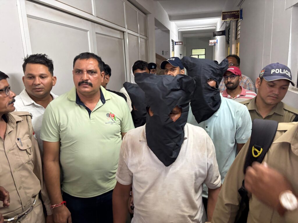 हरिद्वार। रानीपुर पुलिस और सीआईयू की संयुक्त टीम ने रानीपुर क्षेत्र स्थित शिवालिकनगर हरिद्वार निवासी प्रोपर्टी कारोबारी गुलबीर सिंह चौधरी के घर पर 26 अगस्त की सुबह दिनदहाडे हथियारबंद तीन बदमाशों द्वारा उनकी बेटी मोना को तमंचे की नोक पर बंधक बनाकर लाखों के जेवरात व नगदी लूट मामले में चार बदमाशों को गिरफ्तार किया है। जिनके पास से पुलिस टीम ने तीन तमंचे, जिंदा कारतूस, एक चाकू, जेवरात, लाखों की नगदी, दो बाइक बरमाद की है। जबकि एक बदमाश अभी भी फरार है। जिसकी पुलिस सरगर्मी से तलाश में जुटी है। लूट का मास्टरमांइड प्रोपर्टी डीलर का परिचित प्रोपर्टी कारोबारी निकला। लूट का खुलासा एसएसपी प्रमेन्द्र सिह डोबाल ने आज एसपी सिटी कार्यालय में पत्रकार वार्ता के दौरान किया।