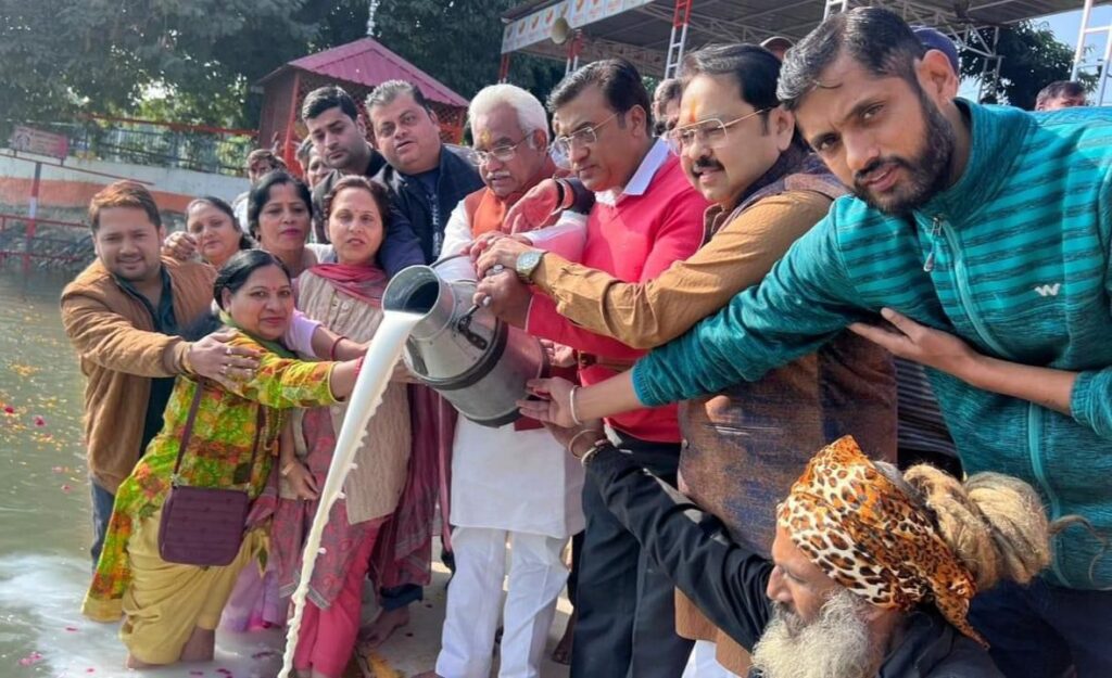 हरिद्वार। उत्तरकाशी के सिलक्यारा में निर्माणाधीन सुरंग में फंसे 41 श्रमिकों की सकुशल वापसी पर भाजपा कार्यकर्ताओं ने विधायक मदन कौशिक के नेतृत्व में अग्रसेन घाट पर मां गंगा का दुग्धाभिषेक किया।