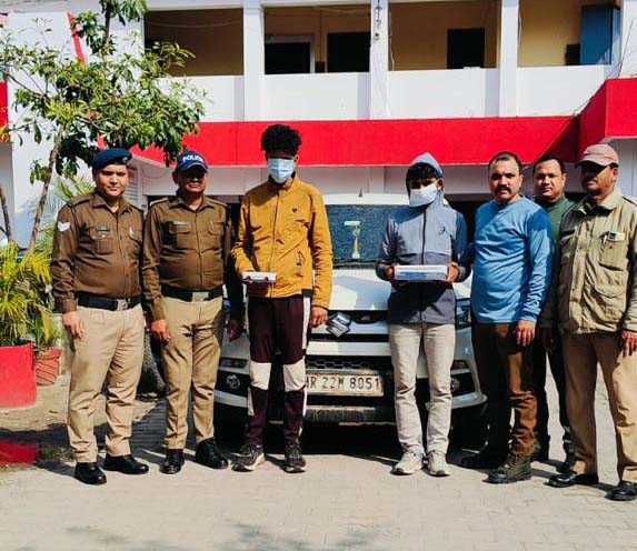 कोतवाली ज्वालापुर प्रभारी निरीक्षक रमेश तनवार ने बताया कि बीती देर शाम रानीपुर मोड स्थित मोबाइल शोरूम महादेव कम्युनिकेशन में मोबाइल देखने के बहाने दो युवक पहुंचे। जिन्होंने शोरूम स्वामी को उलझाकर उसके गले से पैसे चोरी करने का प्रयास किया, लेकिन शोरूम स्वामी की सक्रियता के चलते उसने लोगों की मदद से दोनों को दबोच लिया। जिसकी सूचना मिलते ही पुलिस मौके पर पहुंची और दोनों आरोपियों को अपने कब्जे में ले लिया। पुलिस ने दोनों आरोपियों कि निशानदेही से शोरूम से कुछ ही दूरी पर खड़ी उनकी ब्रेजा कार और उसमें रखे चोरी के अलग-अलग कम्पनियों के 17 मोबाइल बरामद किये।