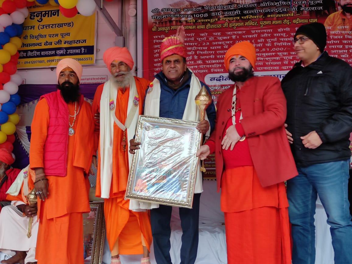 हरिद्वार। ऋषिकुल राजकीय आयुर्वेद महाविद्यालय के शरीर रचना विभागाध्यक्ष व सचिव इण्डियन रेड क्रास प्रोफेसर (डा0) नरेश चौधरी को अपने मूल दायित्वों के साथ-साथ समाज में किये गये उत्कृष्ठ कार्यों के लिये श्री अवधूत मण्डल आश्रम हनुमान मन्दिर की ओर से पीठाधीश्वर अनन्तश्री विभूषित महामण्डलेश्वर स्वामी सन्तोषानन्ददेव महाराज ने बद्रीनाथ धाम आश्रम के लोकार्पण समारोह में विशेष रूप से सम्मानित किया।