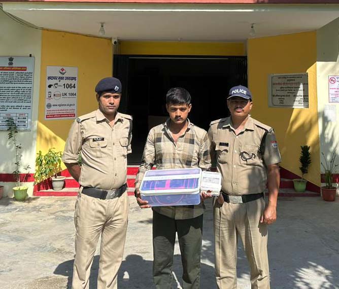 हरिद्वार। कोतवाली रानीपुर और सीआईयू की संयुक्त टीम ने एसएसपी के निर्देश पर सूचना पर कार्रवाई करते हुए 27 लाख की स्मैक के साथ एक तस्कर को गिरफ्तार किया है। जोकि सुभाषनगर में किराए पर रहकर अपने भाई के साथ मिलकर नशे का अवैध धंधा संचालित कर रहा था। पूछताछ के दौरान तस्कर ने पुलिस को स्मैम तस्करी के सम्बंध में तस्करी से जुड़े लोगों की भी जानकारी दी है। पुलिस ने तस्कर के खिलाफ सम्बंधित धाराओं में मामला दर्ज कर लिया। जिसको मेडिकल के बाद न्यायालय में पेश कर जेल भेज दिया। पुलिस फरार आरोपी के भाई की तलाश में जुट गयी हैं वहीं स्मैक तस्करी के सम्बंध में मिले अहम जानकारी पर कार्रवाई की जा रही है। इस बात की जानकारी एसएसपी प्रमेन्द्र डोभाल ने शुक्रवार को रोशनाबाद स्थित पुलिस कार्यालय सभागार में पत्रकार वार्ता के दौरान साझा की।