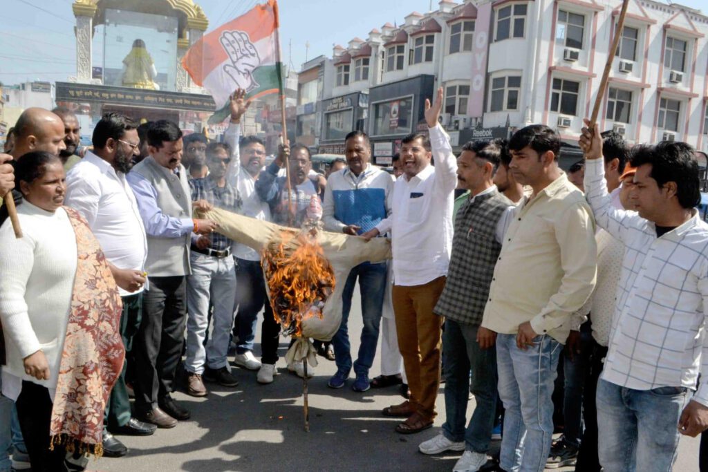 रसोई गैस दाम बढ़ाए जाने पर कांग्रेसियों ने केंद्र का पुतला फूंका