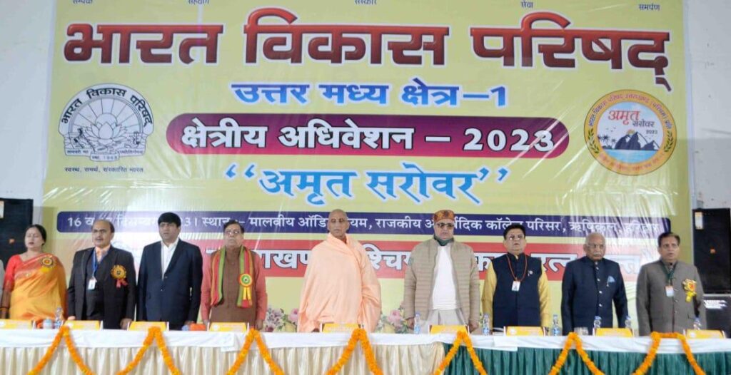 मंच का संचालन क्षेत्रीय महासचिव अनुराग दुबलिश ने इस अधिवेशन के विभिन्न सत्रों में होने वाली चर्चाओ की विस्तार से जानकारी देते हुए कहा कि परिषद के पूरे भारत में 8जोन हैं। और देवभूमि में हो रहे इस अधिवेशन में 239से अधिक शाखाओं के डेलिगेट्स भाग लें रहें हैं। प्रथम सत्र में राष्ट्रीय महामंत्री श्याम शर्मा,राष्ट्रीय स्वयं सेवक संघ के प्रांतीय प्रचारक डॉक्टर शैलेंद्र , कोर यूनिवर्सिटी के जे.सी.जैन,क्षेत्रीय सयुक्त महामंत्री शरद चंद्रा,संगठन मंत्री ललित पांडे, प्रांतीय कोषाध्यक्ष रोहित कोचगवे प्रांतीय महिला संयोजिका सुगंध जैन, महिला एवं बाल विकास संयोजिका डॉक्टर संगीता सिंह,प्रांतीय मीडिया प्रभारी अमित गुप्ता, पंचपुरी शाखा अध्यक्ष एडवोकेट कुशलपाल सिंह चौहान मौजूद रहे। इस अवसर पर भारत विकास परिषद की पश्चिम प्रांत दुबारा प्रकाशित स्मारिका का मंचासीन अतिथियों द्वारा विमोचन भी किया गया।