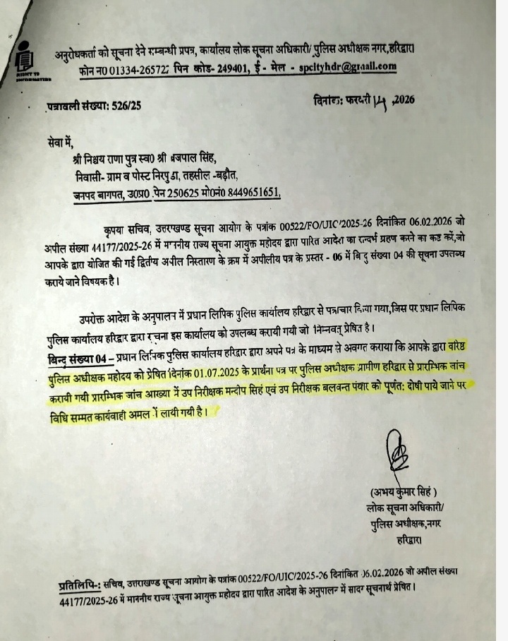 2 Continue Reading Previous: हरिद्वार के दो दरोगाओं पर जांच के नाम पर डरा धमका कर लाखों वसूलने के गम्भीर आरोप Leave a Reply Cancel replyYour email address will not be published. Required fields are marked *Comment * Name * Email * Website Save my name, email, and website in this browser for the next time I comment.