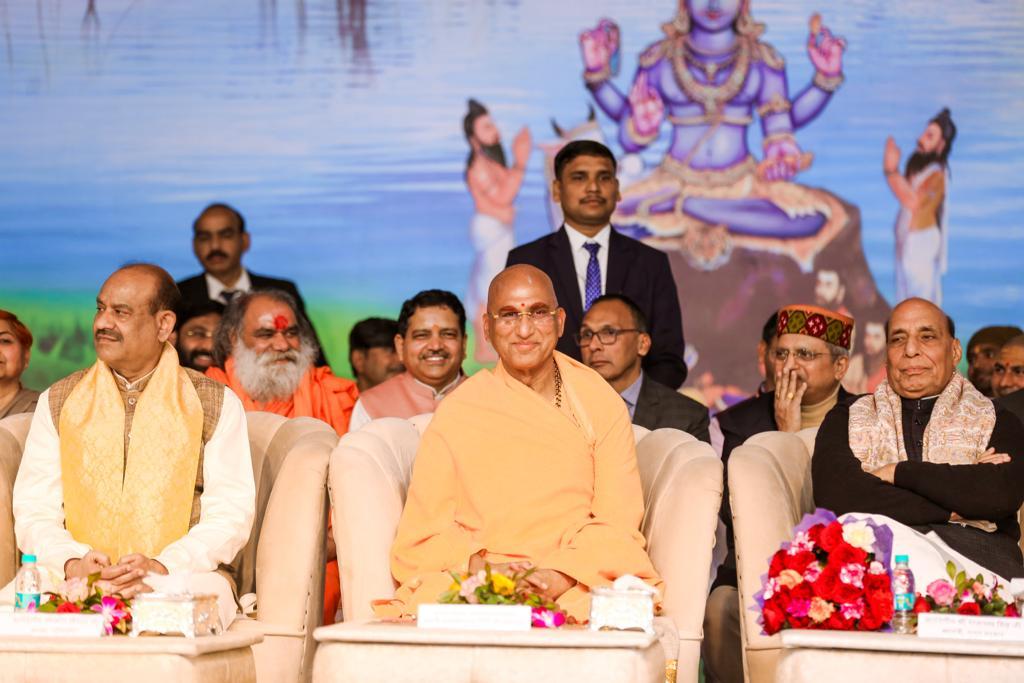उन्होने कहा कि पुराने समय में जब राजाओं का अभिषेक होता था तो राजा के ऊपर केवल एक ही सत्ता रहती थी और वह है धर्म सत्ता। राजा अपना राजधर्म निभा रहा है कि नही इसका अधिकार स्वामी जी जी जैसे मनीषियों का ही है। उन्होंने अपने उद्बोधन में मन और विचार की उच्चता को दिव्यता और परमानन्द प्राप्ति का साधन बताया, और सन्तों की महिमा का बखान करते हुए कहा कि सन्त मोह माया से विरक्त होने के बाद भी समाज के कल्याण के लिए हमेशा समाज से जुड़े रहते हैं। उन्होंने संस्कृति के साथ जुड़ाव को महत्त्वपूर्ण और सर्वथा कल्याणकारी बताया। उनके साथ इस अवसर पर लोकसभा अध्यक्ष ओम बिड़ला और बीजेपी के राष्ट्रीय अध्यक्ष तथा राज्यसभा सदस्य सुधांशु त्रिवेदी जी भी उपस्थित रहे।